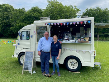 Hugo was built in 1976 in France and was in fact built to be a horse box, hence the higher roof. In 2013 Monsieur Faurle sold Hugo to a company in England where he was converted into a coffee and soup van based in Cambridgeshire. In 2017 Caroline bought Hugo and brought him to Wiltshire and had two French Iron Griddles installed to cook crêpes on and so now is going to festivals, weddings, shows, private parties and corporate events selling crêpes, bespoke coffee, pukka tea and hot chocolate.
